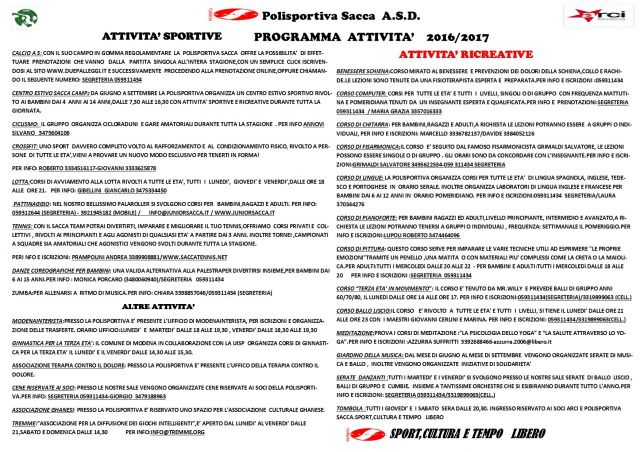| Centro Estivo SACCA CAMP 2017 | pubblicata: 11-05-2017 |