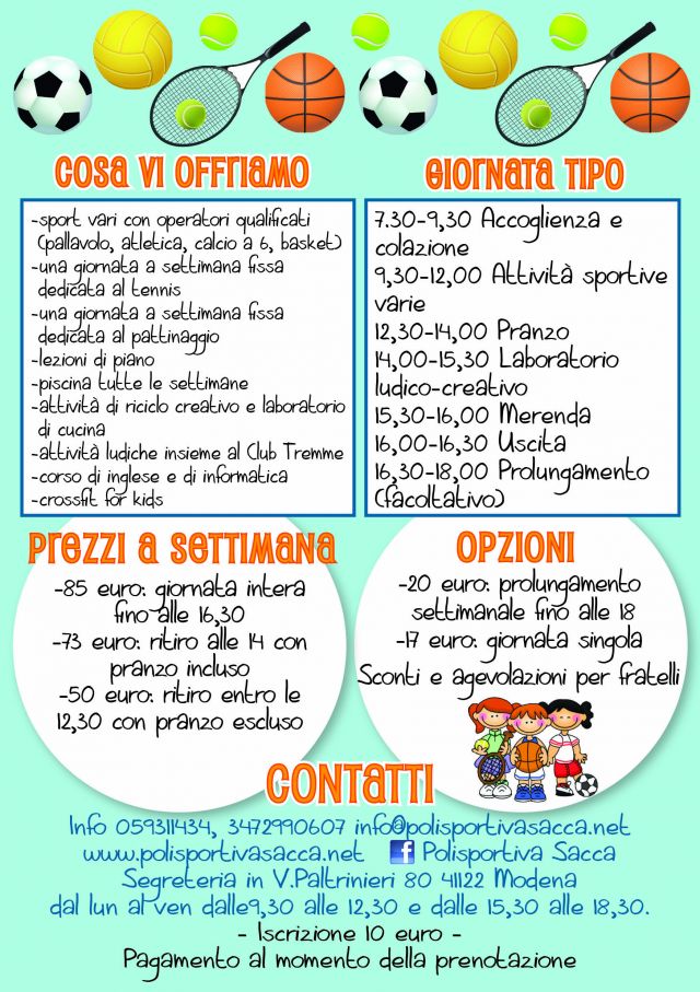 VI PRESENTIAMO L'OFFERTA ESTIVA DELLA POL. SACCA PER TUTTI I BAMBINI DAI 5 AI 13 ANNI