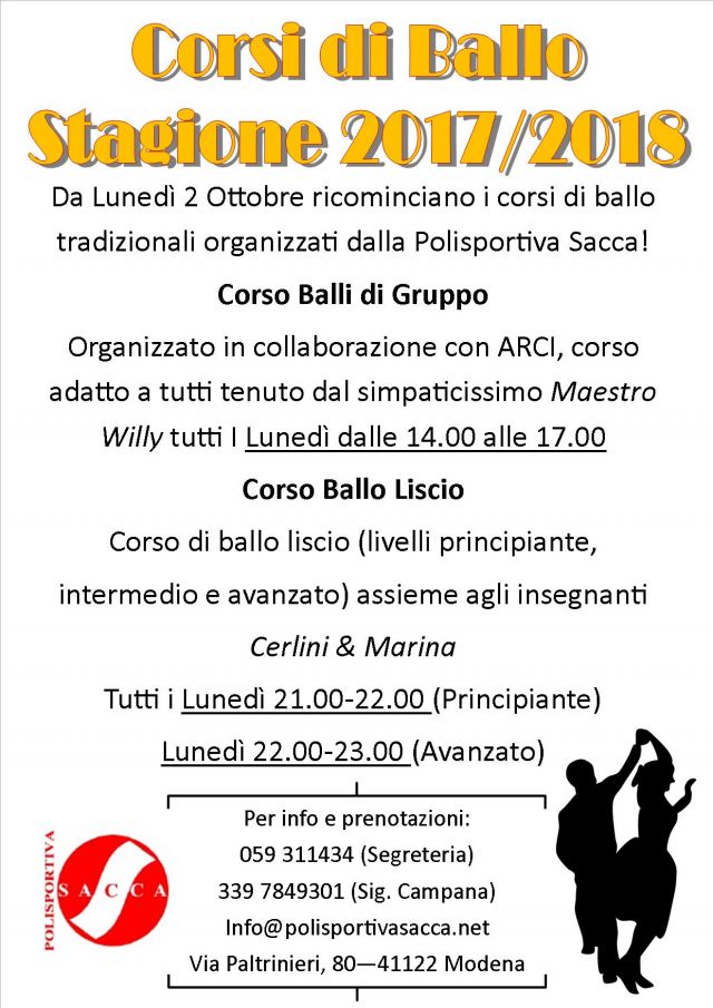 | Inizio Corsi Ballo Stagione 2017/2018 | pubblicata: 16-01-2018 |