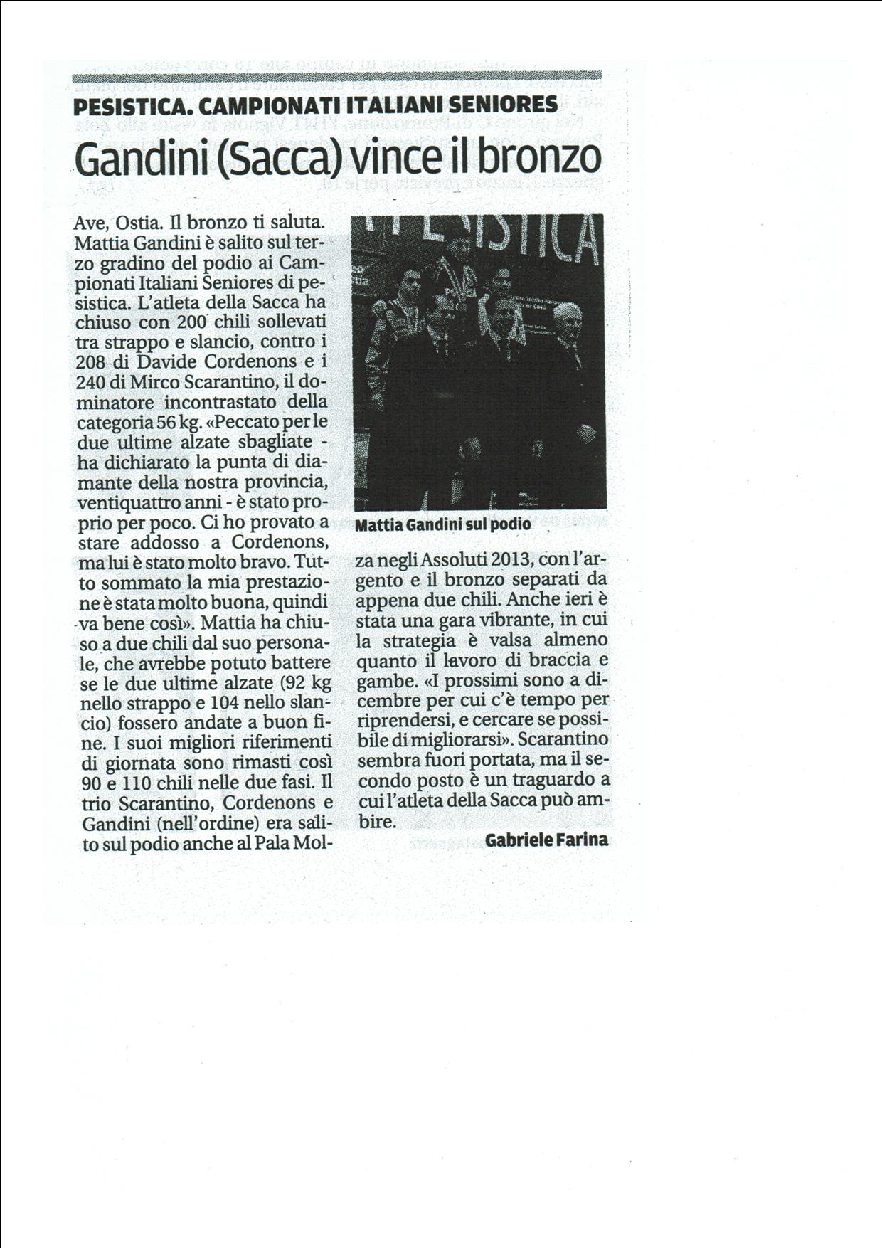 Mattia Gandini vince il bronzo ai campionati italiani seniores