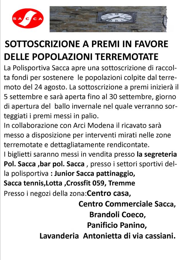 | Sottoscrizione a premi in favore delle popolazioni terremotate | pubblicata: 02-09-2016 |